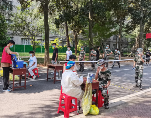 清晨7點(diǎn),志愿者們身穿志愿紅馬甲來(lái)到核酸檢測(cè)點(diǎn),他們忙著擺桌子、搬板凳,劃分采集區(qū)、登記區(qū)、等待區(qū)等各項(xiàng)工作。隨后,通過(guò)大喇叭喊話,通知同學(xué)們按照時(shí)間節(jié)點(diǎn)參與核酸檢測(cè),確保了核酸檢測(cè)有序進(jìn)行。