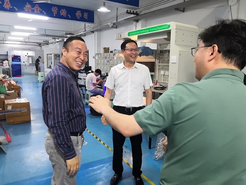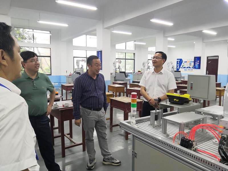 學(xué)院黨委委員、副院長(zhǎng)成朝陽(yáng)和歐陽(yáng)智勇分別介紹了學(xué)院的基本情況以及相關(guān)專(zhuān)業(yè)的定位,同時(shí)強(qiáng)調(diào),學(xué)院致力于以就業(yè)為導(dǎo)向,以職業(yè)發(fā)展為目標(biāo),加強(qiáng)實(shí)訓(xùn)基地建設(shè),實(shí)現(xiàn)校企共建共享共贏,積極打造專(zhuān)業(yè)特色培養(yǎng)模式。在充分介紹學(xué)院學(xué)科特色和優(yōu)秀畢業(yè)生資源的基礎(chǔ)上,成朝陽(yáng)副院長(zhǎng)表示希望能夠通過(guò)本次洽談,以共建校企實(shí)習(xí)基地為契機(jī),為雙方賦能,在畢業(yè)生就業(yè)創(chuàng)業(yè)、實(shí)習(xí)實(shí)訓(xùn)、人才培養(yǎng)、專(zhuān)業(yè)建設(shè)等方面達(dá)成共識(shí)。隨后,參觀了電梯實(shí)訓(xùn)室、工業(yè)機(jī)器人實(shí)訓(xùn)室和唐中武技能大師工作室。