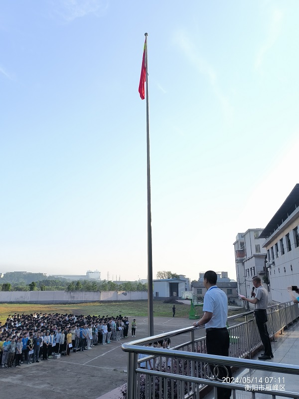 為進(jìn)一步加強(qiáng)愛國主義教育,引導(dǎo)學(xué)生以更加飽滿的精神狀態(tài)踐行習(xí)近平新時代中國特色社會主義思想,堅定理想信念,報效祖國,衡陽技師學(xué)院電氣工程學(xué)院于5月14日早晨7點(diǎn)在田徑場隆重舉辦升國旗儀式。全院在校班級1600余名學(xué)生和全體學(xué)管人員參加,儀式由學(xué)??浦苋A軍科長主持,電氣工程學(xué)院黨總支書記羅軍出席儀式。
