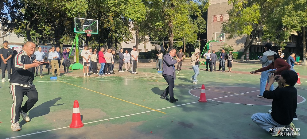 托球折返跑:籃球場(chǎng)上,教職工們手持乒乓球拍,小心翼翼地托著球,快速而穩(wěn)健地在折返點(diǎn)間穿梭,展現(xiàn)了速度與平衡的完美結(jié)合。