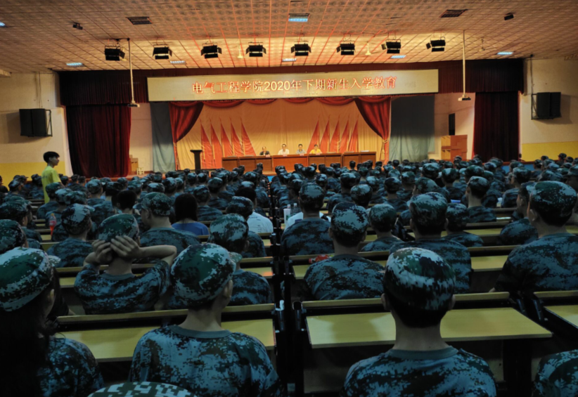 2020年9月4日下午,電氣工程學(xué)院2020級新生在院本部大禮堂進行入學(xué)教育,700多名新生身著迷彩服,整齊的聆聽黨總支書記王瀾等學(xué)管領(lǐng)導(dǎo)的教誨。