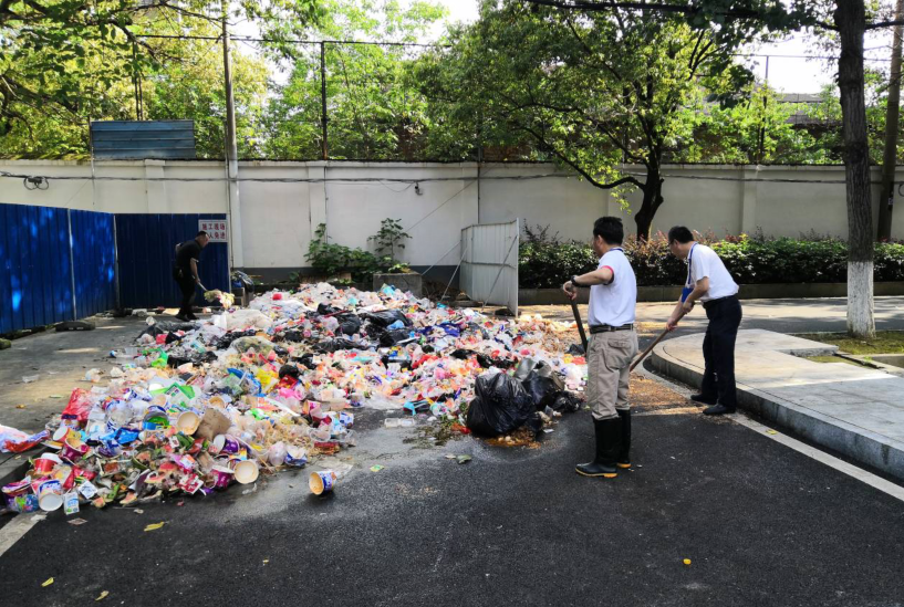 黨總支書(shū)記王瀾以身作則,帶領(lǐng)黨員干部對(duì)科教樓旁的垃圾站,進(jìn)行清理。