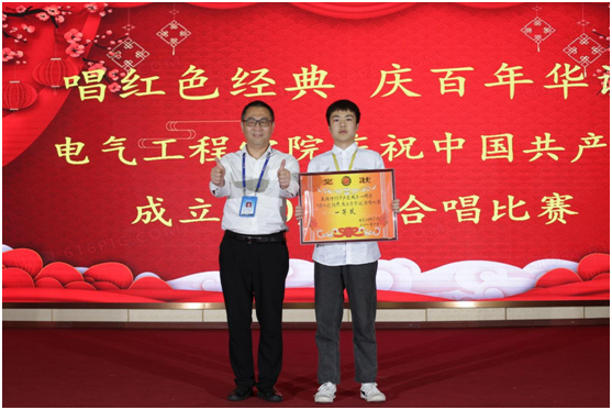 為慶祝中國共產(chǎn)黨建黨100周年華誕,熱情謳歌黨領(lǐng)導(dǎo)人民革命、社會主義建設(shè)和改革開放所取得的輝煌成就,2021年5月20日下午,電氣工程學(xué)院團(tuán)總支主辦的慶祝中國共產(chǎn)黨成立100周年,唱紅色歌曲合唱比賽在電氣工程學(xué)院大禮堂隆重舉行,電氣工程學(xué)院院長王瀾、電氣工程學(xué)院黨總支書記蔣宏杰等領(lǐng)導(dǎo)與百余名師生共同觀看了演出。