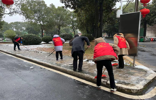 天氣嚴(yán)寒,但大家干勁十足。清掃中,師生們團(tuán)結(jié)一致、分工明確,不一會(huì)兒積雪就被清理干凈。一個(gè)個(gè)忙碌的身影在銀裝素裹的校園里形成了一道道靚麗的風(fēng)景線,出行居民紛紛對志愿者們投來贊許的目光,為清掃隊(duì)伍“點(diǎn)贊”。
