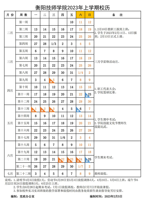 衡陽技師學(xué)院2023年下學(xué)期校歷