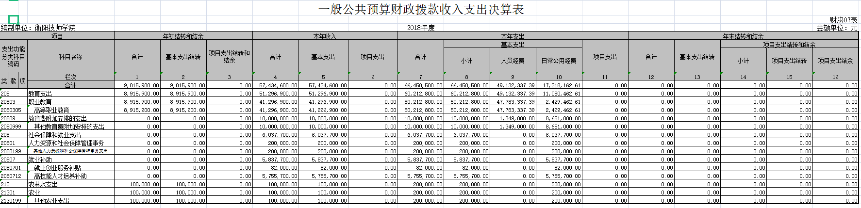 衡陽技師學(xué)院2018年度部門決算公開