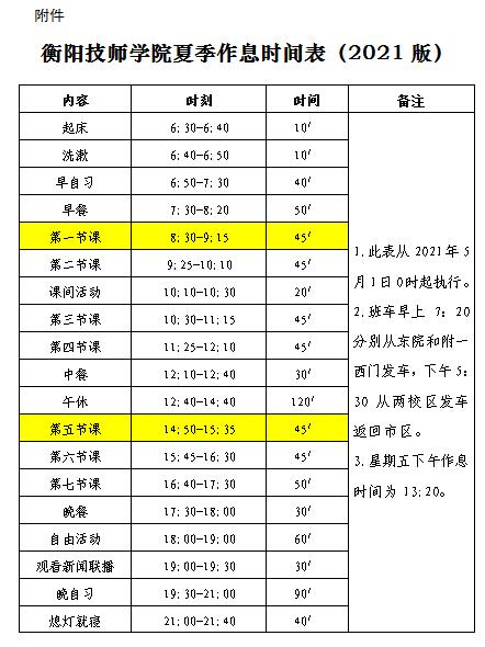 附件:衡陽技師學(xué)院夏季作息時間表(2021版)