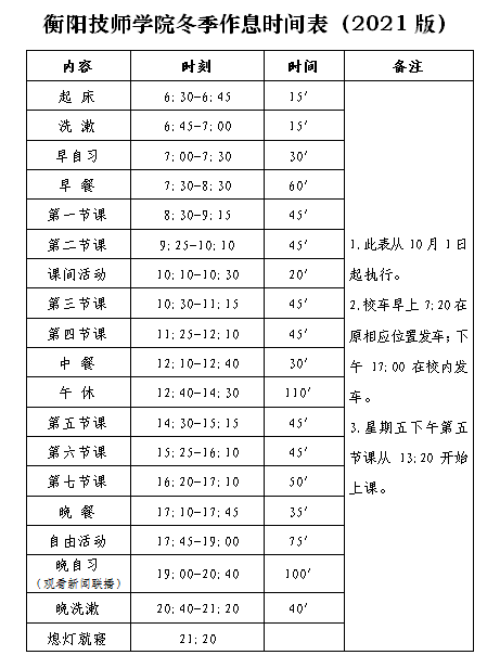 七、10月1日起執(zhí)行冬季作息時間(作息時間表附后)。