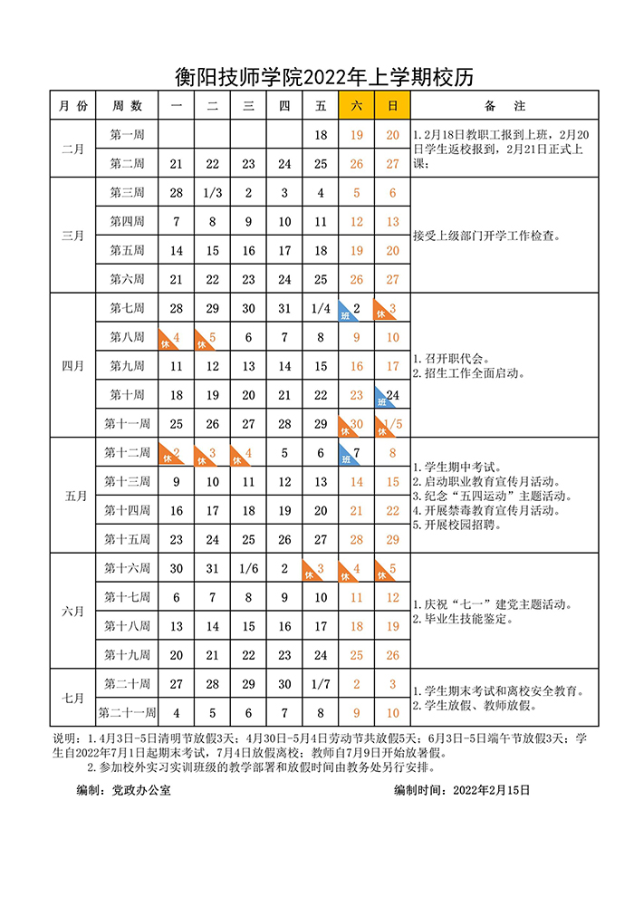 衡陽技師學(xué)院2022年上學(xué)期校歷