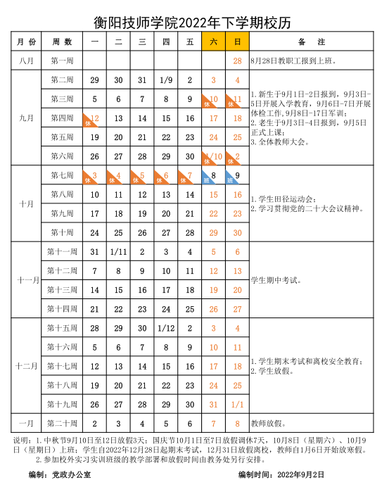 衡陽(yáng)技師學(xué)院2022年下學(xué)期校歷
