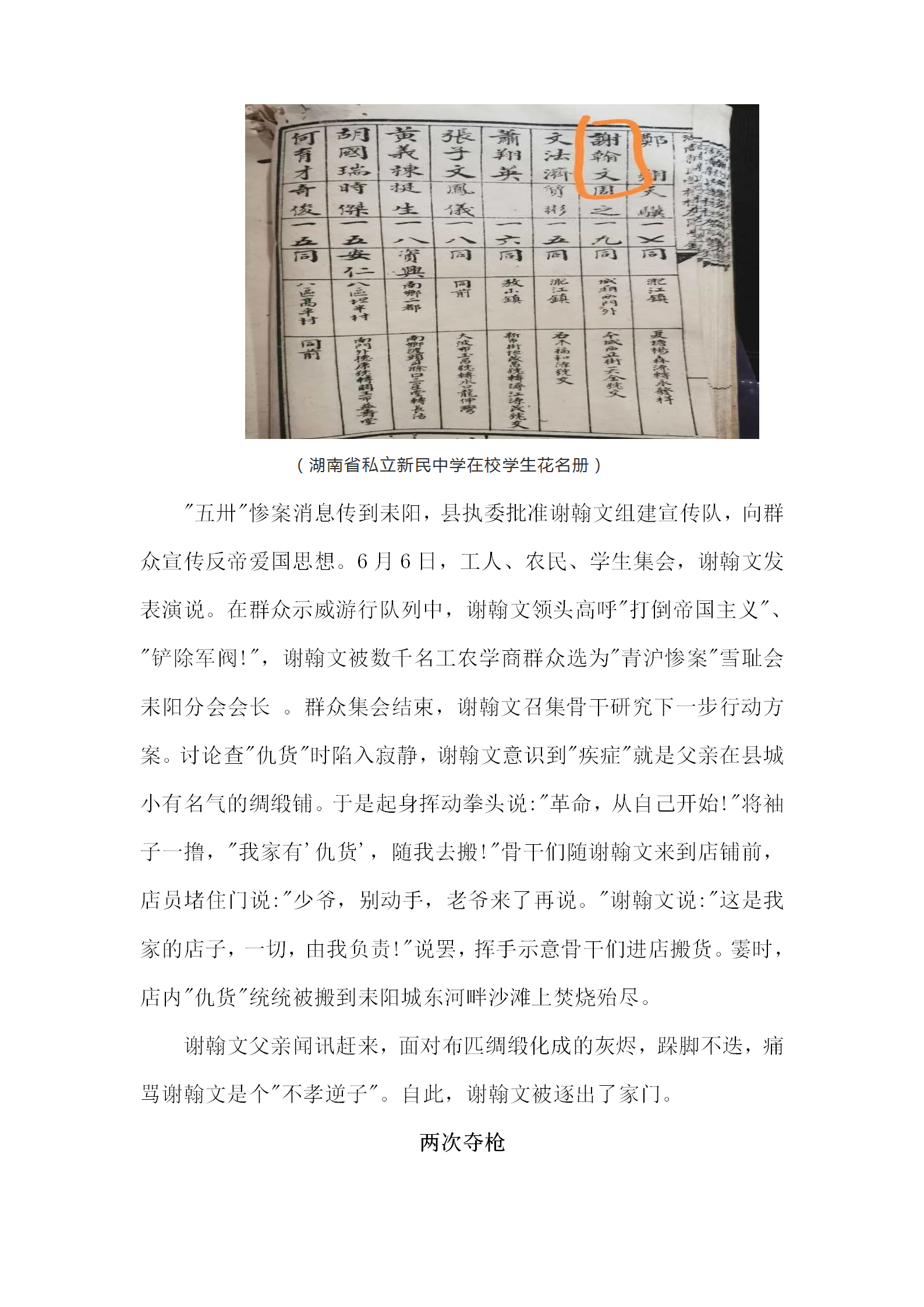 民族的抗日英烈——謝翰文