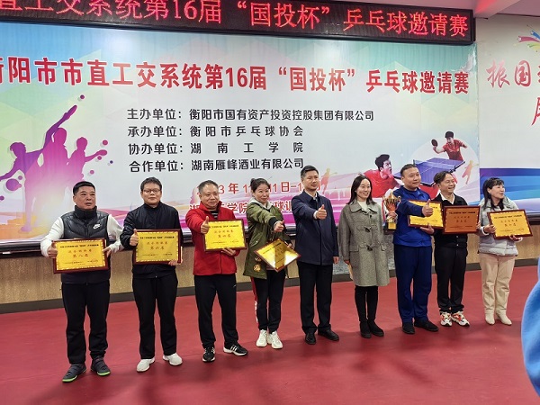 2023年11月11日至12日,衡陽市市直工交系統(tǒng)第16屆“國投杯”乒乓球邀請賽在湖南工學(xué)院乒乓球教學(xué)訓(xùn)練中心隆重舉行,來自市直工交系統(tǒng)的25支代表隊(duì)、221名選手參加比賽。我院代表隊(duì)團(tuán)結(jié)一心,敢打敢拼,取得了近10年來創(chuàng)紀(jì)錄的好成績。院長廖與飛榮獲特邀嘉賓甲組第五名,電氣工程學(xué)院賀鑫榮獲男子單打乙組(45歲以下)第二名,我院代表隊(duì)獲團(tuán)體賽第六名。