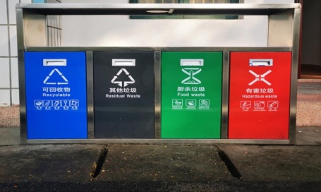 學(xué)院內(nèi)設(shè)置的分類垃圾箱