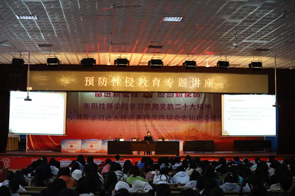 為了引導(dǎo)學(xué)生認識到什么是性侵害,了解性侵害的主要形式,切實提高學(xué)生的自我保護意識和安全防范能力 。11月24日,衡陽技師學(xué)院邀請衡南縣公安局團委書記鄧姿姿在學(xué)院大禮堂舉辦預(yù)防性侵教育專題講座,700余名學(xué)生代表參加講座。
