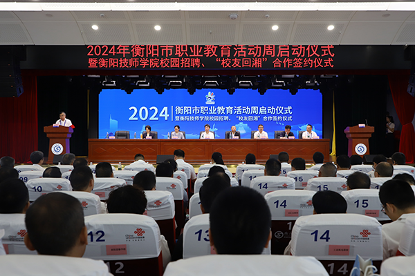 衡陽市政府辦、市教育局、市人社局、市科協(xié)等單位相關(guān)負(fù)責(zé)同志,各縣市區(qū)教育局分管領(lǐng)導(dǎo)、相關(guān)股室負(fù)責(zé)人,各職業(yè)院校領(lǐng)導(dǎo)、校企合作單位代表,衡陽技師學(xué)院校友代表及師生代表等500余人參加啟動(dòng)儀式。