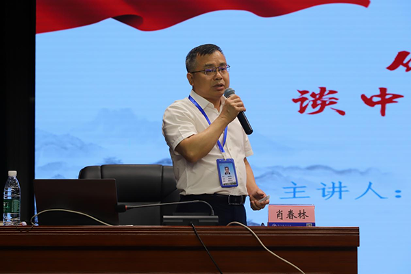 肖春林從中華文明起源談中華民族共同體意識,講述各民族共同開拓遼闊的疆域、共同書寫悠久歷史、共同創(chuàng)造燦爛的文化、共同培育偉大民族精神的故事,充分論證中華民族是血脈相連、不可分割的共同體。