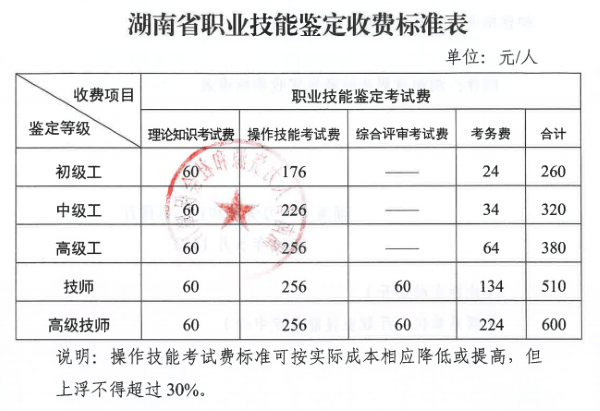根據(jù)(湘人社規(guī)[2024] 3號)文件精神,我院職業(yè)技能等級認定收費按以下標準收取。