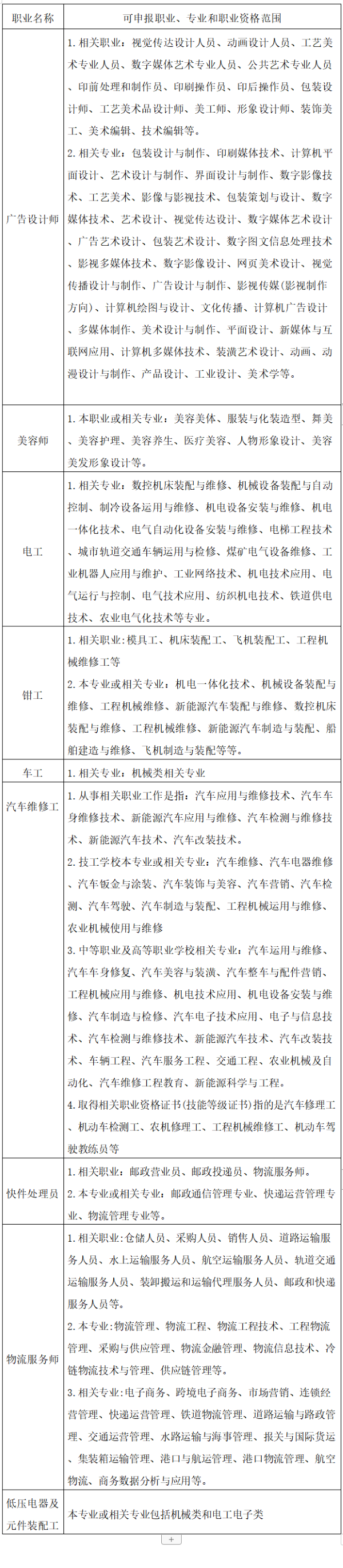 (五)可申報職業(yè)、專業(yè)和職業(yè)資格范圍