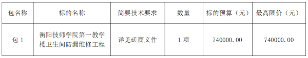 衡陽(yáng)技師學(xué)院的第一教學(xué)樓衛(wèi)生間防漏維修工程項(xiàng)目進(jìn)行采購(gòu),現(xiàn)邀請(qǐng)合格投標(biāo)人參加投標(biāo)。