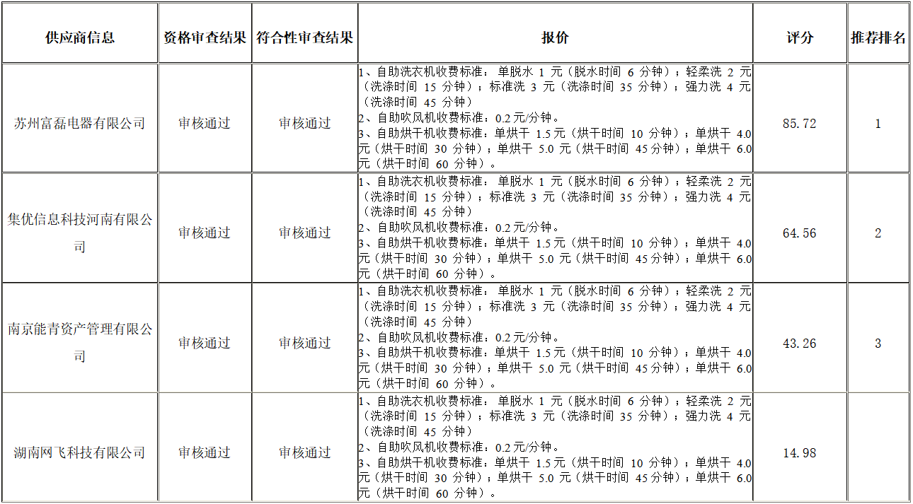 衡陽(yáng)技師學(xué)院高技能人才培訓(xùn)基地配套設(shè)施項(xiàng)目學(xué)員宿舍A棟、學(xué)員宿舍B棟安裝自助洗衣機(jī)、吹風(fēng)機(jī)、烘干機(jī)項(xiàng)目公開(kāi)招標(biāo)采購(gòu)于2024年07月03日結(jié)束,現(xiàn)將中標(biāo)(成交)結(jié)果公告如下: