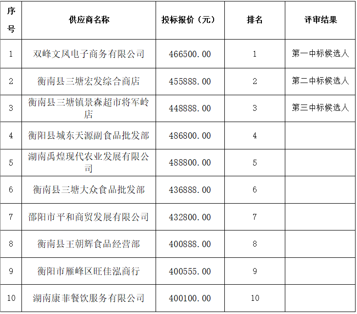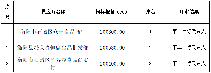 衡陽技師學(xué)院一號、二號、三號、四號商店合作經(jīng)營項目(第三次)招標(biāo)于2024年7月24日結(jié)束,現(xiàn)將中標(biāo)結(jié)果公告如下: