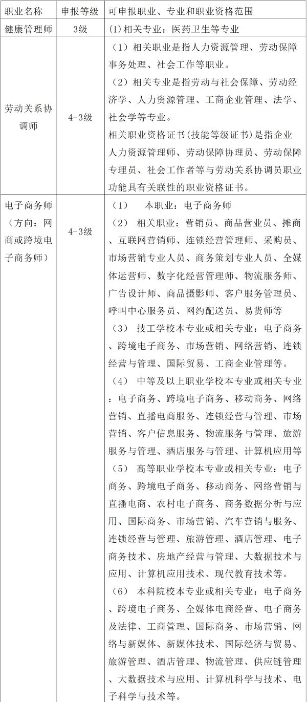 (四)可申報(bào)職業(yè)、專業(yè)和職業(yè)資格范圍