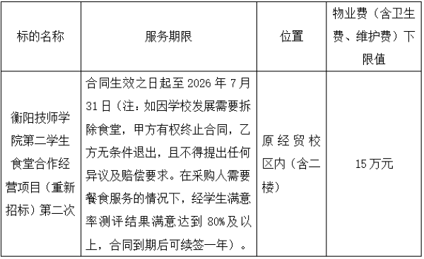 原公告的采購(gòu)項(xiàng)目名稱(chēng):衡陽(yáng)技師學(xué)院第二學(xué)生食堂合作經(jīng)營(yíng)項(xiàng)目(重新招標(biāo))第二次