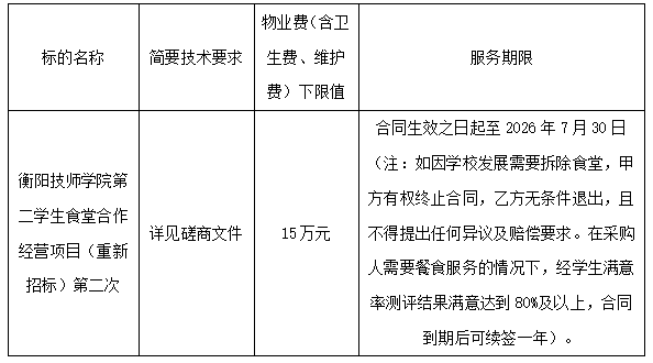 采購(gòu)項(xiàng)目名稱:衡陽(yáng)技師學(xué)院第二學(xué)生食堂合作經(jīng)營(yíng)項(xiàng)目(重新招標(biāo))第二次