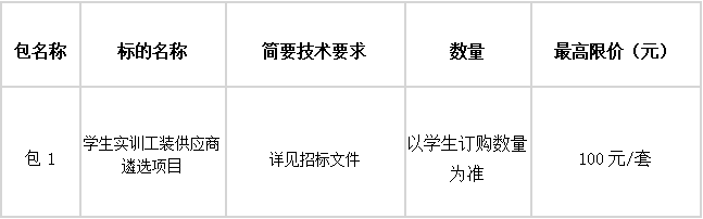 1.采購項目名稱:學生實訓工裝供應商遴選項目