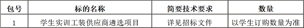 一、采購(gòu)項(xiàng)目名稱、編號(hào)采購(gòu)項(xiàng)目名稱:學(xué)生實(shí)訓(xùn)工裝供應(yīng)商遴選項(xiàng)目