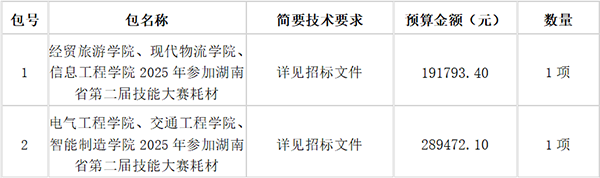湖南省招標(biāo)有限責(zé)任公司采購代理機(jī)構(gòu)受衡陽技師學(xué)院的委托,對參加衡陽技師學(xué)院參加2025年湖南省第二屆技能大賽耗材采購項(xiàng)目(委托代理編號:0623-2465N1124005)進(jìn)行公開招標(biāo)采購。歡迎符合資格條件的投標(biāo)人前來投標(biāo)。