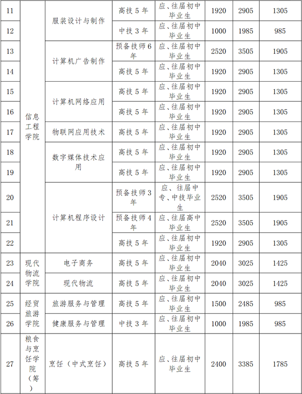 2.報讀中技層次且符合國家學(xué)費減免政策的學(xué)生免交學(xué)費,報讀高技、預(yù)備技師層次且符合國家學(xué)費減免政策的學(xué)生在此標準上減免學(xué)費1600元/期后按差額交學(xué)雜費;