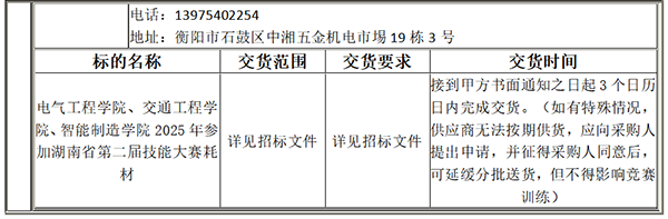 采購項(xiàng)目名稱:衡陽技師學(xué)院參加2025年湖南省第二屆技能大賽耗材采購項(xiàng)目