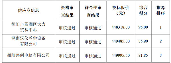 衡陽(yáng)技師學(xué)院2025年度實(shí)訓(xùn)耗材采購(gòu)項(xiàng)目于2025年1月20日結(jié)束,現(xiàn)將成交結(jié)果公告如下: