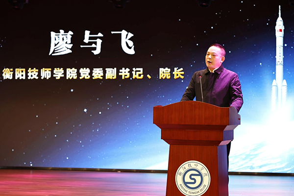 “心懷感恩,愿與衡陽技師學(xué)院共敘情誼;希望同學(xué)們珍惜機(jī)遇,傳承匠心;期待與大家攜手同行,共筑未來?!焙翁飩フf道。