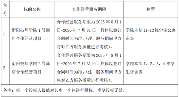 華新項(xiàng)目管理集團(tuán)有限公司受衡陽技師學(xué)院的委托,對衡陽技師學(xué)院1、2、4號商店合作經(jīng)營項(xiàng)目(第二次)進(jìn)行院內(nèi)自主招標(biāo),邀請符合資質(zhì)條件的投標(biāo)人來參加投標(biāo)。
