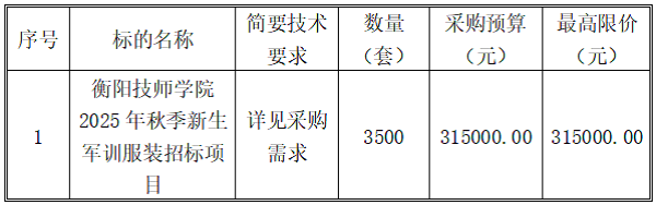 2.采購項(xiàng)目名稱:衡陽技師學(xué)院2025年秋季新生軍訓(xùn)服裝招標(biāo)項(xiàng)目