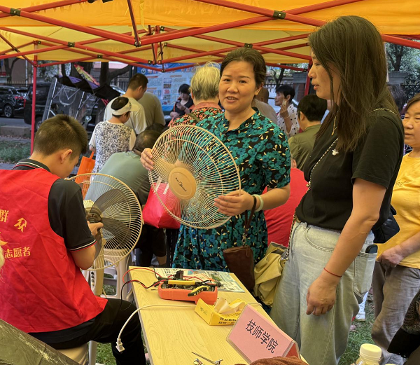電器維修攤位前早已排起了長隊,居民們紛紛把家里損壞的電風(fēng)扇、電飯煲、電水壺等電器拿來維修。