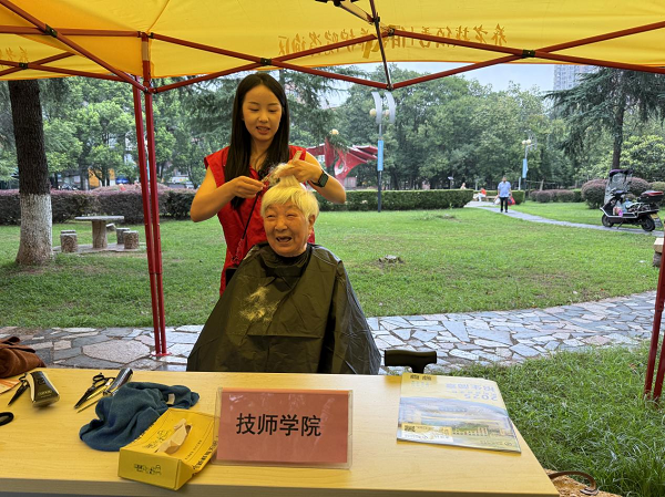 美發(fā)區(qū)域更是人氣爆棚,吸引了眾多社區(qū)居民前來體驗。愛心義剪志愿者俯下身子耐心地為居民們修剪發(fā)型,居民們的臉上洋溢著幸福的笑容,紛紛稱贊志愿者們手藝精湛、服務(wù)貼心。