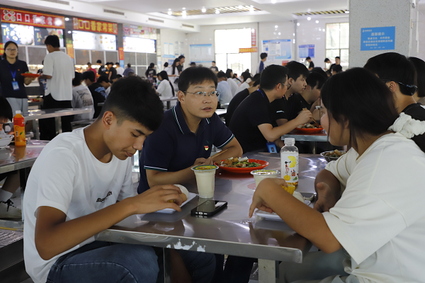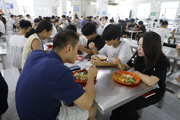 食堂里飯菜飄香、笑語盈盈?!翱谖哆€習(xí)慣嗎?”“分量夠不夠?”黨員們與各族學(xué)生同桌用餐、親切交流,原本普通的午餐時光,秒變收集意見、解決實際問題的“服務(wù)驛站”。餐桌上的氤氳熱氣,升騰起師生間的濃濃暖意。