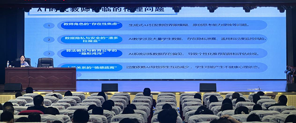 近日,衡陽(yáng)技師學(xué)院在公共實(shí)訓(xùn)基地11樓報(bào)告廳舉辦“AI賦能課堂,助力高效教學(xué)”教師智能教育素養(yǎng)提升培訓(xùn)。學(xué)院專(zhuān)任教師參加培訓(xùn)。