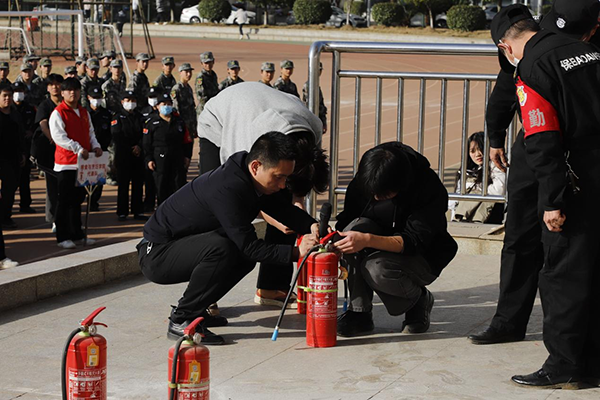 應(yīng)急疏散演練后,進(jìn)行了消防安全知識(shí)培訓(xùn),消防救援人員現(xiàn)場(chǎng)示范滅火器的規(guī)范使用方法,組織師生代表上臺(tái)實(shí)操演練,“手把手”指導(dǎo)大家掌握滅火技巧。
