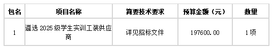 湖南省招標(biāo)有限責(zé)任公司采購代理機(jī)構(gòu)受衡陽技師學(xué)院的委托,對遴選2025級(jí)學(xué)生實(shí)訓(xùn)工裝供應(yīng)商(委托代理編號(hào):0623-2685N1124004 )進(jìn)行公開招標(biāo)采購。歡迎符合資格條件的投標(biāo)人前來投標(biāo)。
