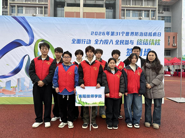 3月19日,學(xué)院團(tuán)委積極響應(yīng)衡陽市衛(wèi)健委、共青團(tuán)衡陽市委號召,組織師生志愿者服務(wù)隊參加2026年衡陽市“世界防治結(jié)核病日”主題宣傳活動暨百千萬志愿者結(jié)核病防治知識傳播行動啟動儀式。