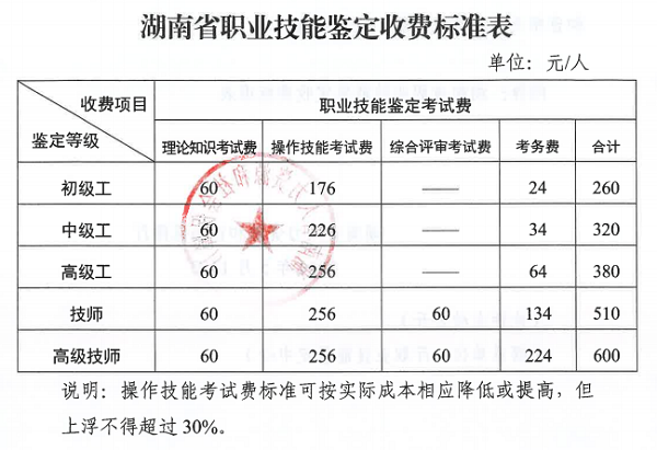 根據(jù)(湘人社規(guī)[2024] 3號)文件精神,我院職業(yè)技能等級認定收費按以下標準收取。