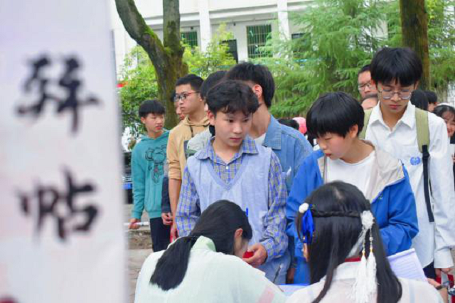 活動(dòng)當(dāng)天,該系從“愛、優(yōu)文學(xué)”早讀內(nèi)容中精心挑出300個(gè)謎語(社會(huì)主義核心價(jià)值觀20個(gè),習(xí)近平金句30個(gè),聲律啟蒙50個(gè),三字經(jīng)100個(gè),唐詩三百首100個(gè))懸掛在燈籠下方,由工作人員身著漢服進(jìn)行引導(dǎo),各班學(xué)生手持拜帖方可入場(chǎng)進(jìn)行猜謎答題,帶給大家視覺盛宴的同時(shí),提升了參與者的體驗(yàn)感和儀式感,營造出濃厚的民族節(jié)日氛圍。活動(dòng)規(guī)則為答對(duì)即可抽獎(jiǎng),中獎(jiǎng)率為100%,猜出謎面?zhèn)€數(shù)越多,獎(jiǎng)勵(lì)越多,積分越高?;顒?dòng)現(xiàn)場(chǎng),學(xué)生們熱情洋溢,躍躍欲試,經(jīng)過持續(xù)3個(gè)小時(shí)的競(jìng)猜,最終,17廣告技師班鄭小榮、18廣告高技2班周濤、湯佳分別奪得狀元、榜眼、探花稱號(hào),其中18廣告高技2班累計(jì)答題數(shù)目最多,獲得“翰林學(xué)府”獎(jiǎng)項(xiàng)。