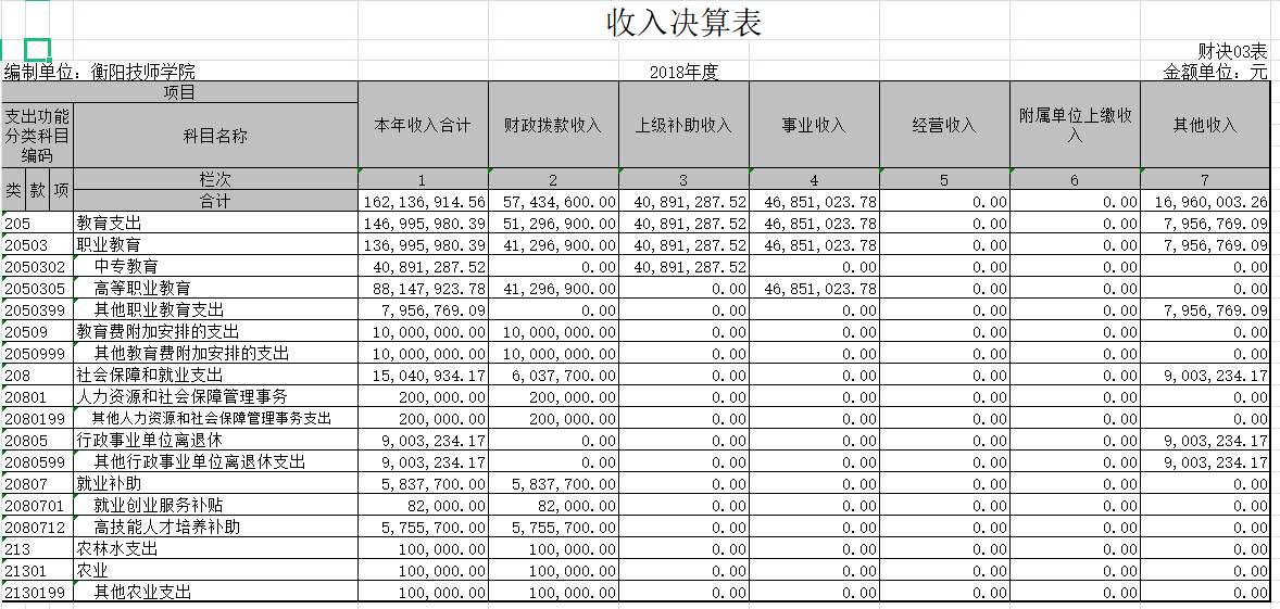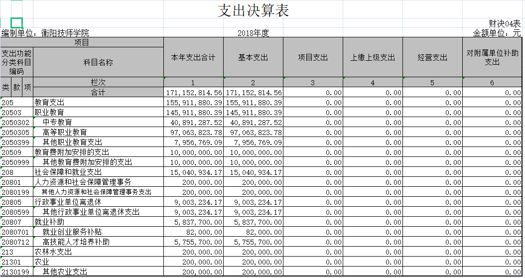 (二)決算單位構(gòu)成。我院無二級(jí)預(yù)算單位,因此衡陽技師學(xué)2018年部門決算即衡陽技師學(xué)院本級(jí)2018年部門決算。