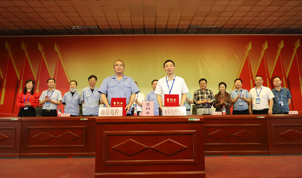 學(xué)院院長(zhǎng)邱家才與南岳電控總經(jīng)理譚新民代表校企雙方簽約
