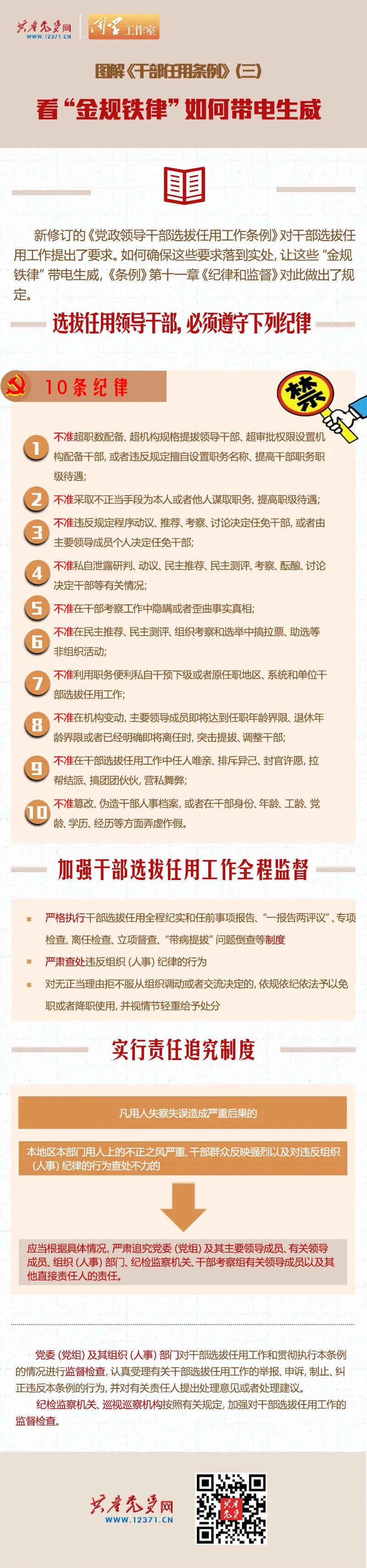 第六十條 加強(qiáng)干部選拔任用工作全程監(jiān)督,嚴(yán)格執(zhí)行干部選拔任用全程紀(jì)實(shí)和任前事項(xiàng)報(bào)告、“一報(bào)告兩評(píng)議”、專(zhuān)項(xiàng)檢查、離任檢查、立項(xiàng)督查、“帶病提拔”問(wèn)題倒查等制度。嚴(yán)肅查處違反組織(人事)紀(jì)律的行為。對(duì)違反本條例規(guī)定的事項(xiàng),按照有關(guān)規(guī)定對(duì)黨委(黨組)主要領(lǐng)導(dǎo)成員和有關(guān)領(lǐng)導(dǎo)成員、組織(人事)部門(mén)有關(guān)領(lǐng)導(dǎo)成員以及其他直接責(zé)任人作出組織處理或者紀(jì)律處分;涉嫌違法犯罪的,移送有關(guān)國(guó)家機(jī)關(guān)依法處理。
