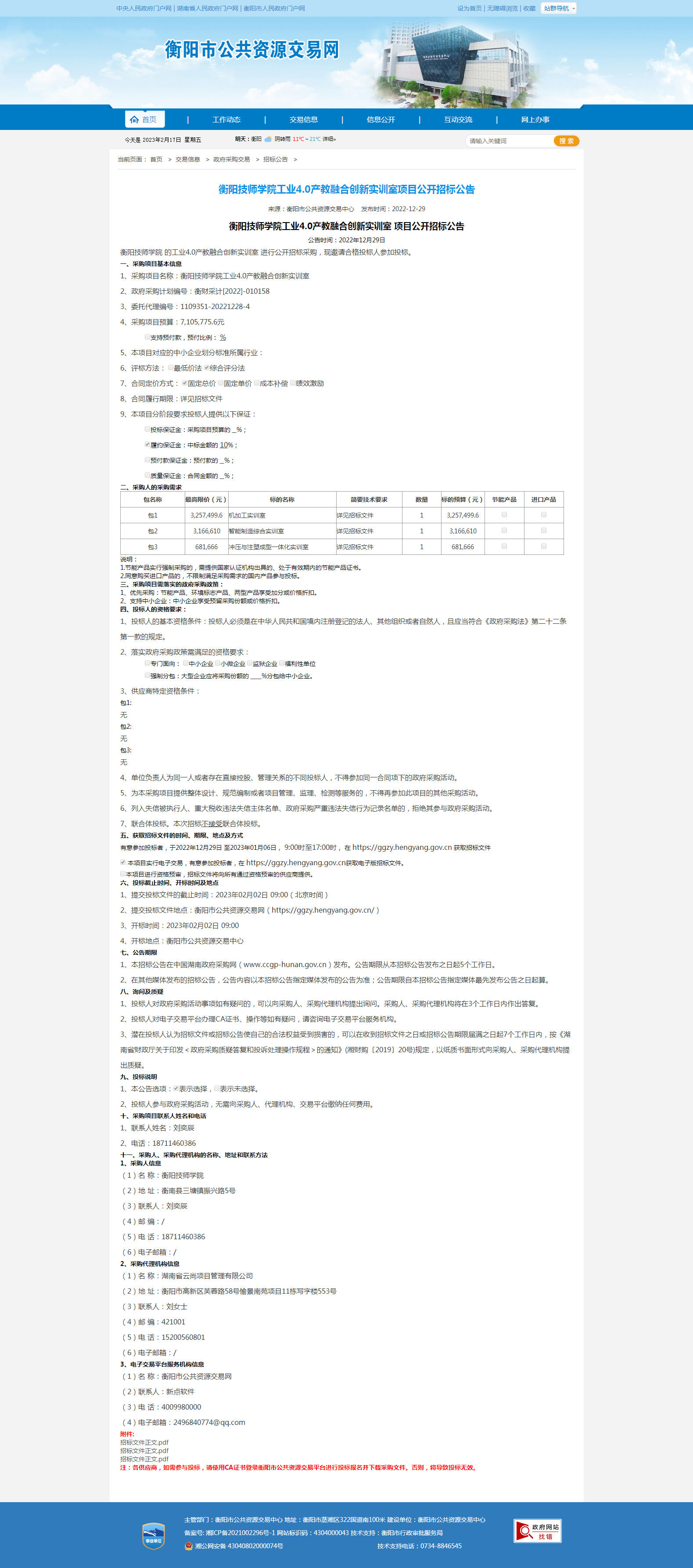 衡陽技師學(xué)院工業(yè)4.0產(chǎn)教融合創(chuàng)新實(shí)訓(xùn)室項(xiàng)目公開招標(biāo)公告